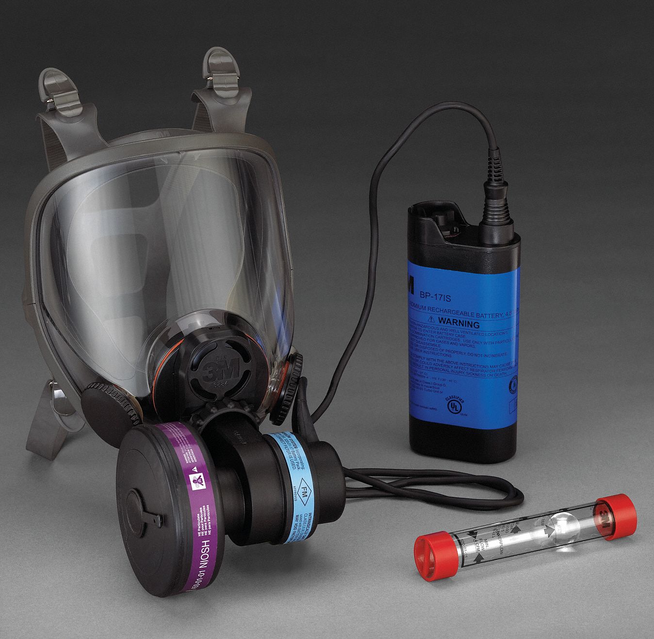 Medium full facepiece blower battery pack flow indicator he filter standards.